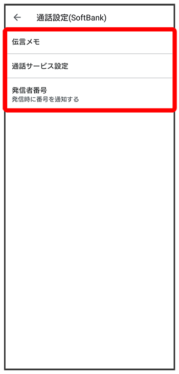 通話に関する設定ができます。設定できる項目は次のとおりです。