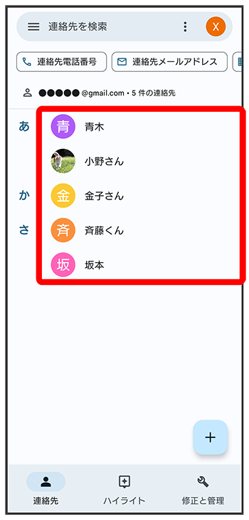 表示)続けてほかの対象の連絡先をタップと操作します。