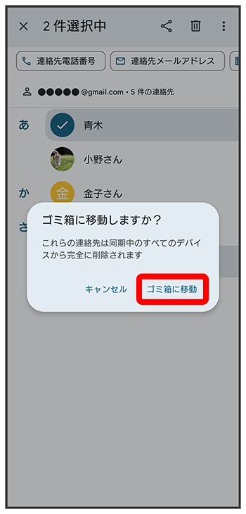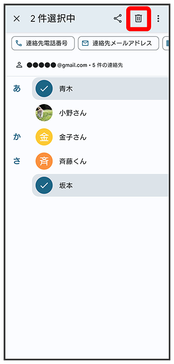 - 複数の連絡先を削除する場合は、対象の連絡先をロングタッチ(