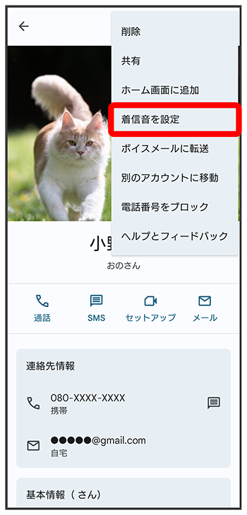 連絡先ごとに着信音を設定する