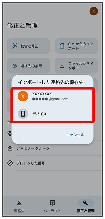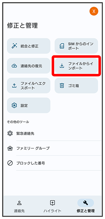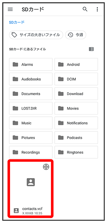 SDカードに保存(バックアップ)した電話帳データを読み込み(インポート)できます。