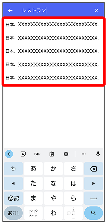 位置情報のキーワードを入力送りたい位置情報をタップ
