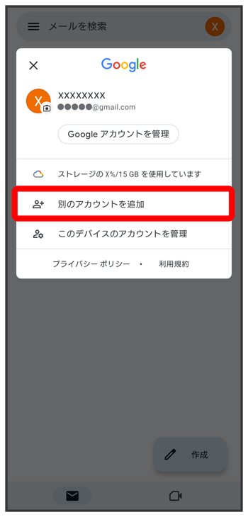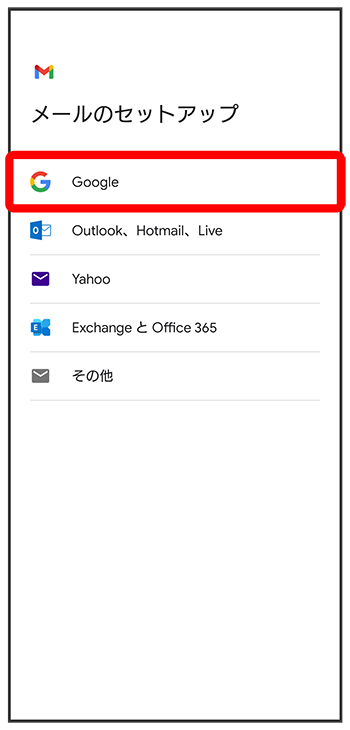ここではGoogle のメールアカウントの追加を例に説明しています。