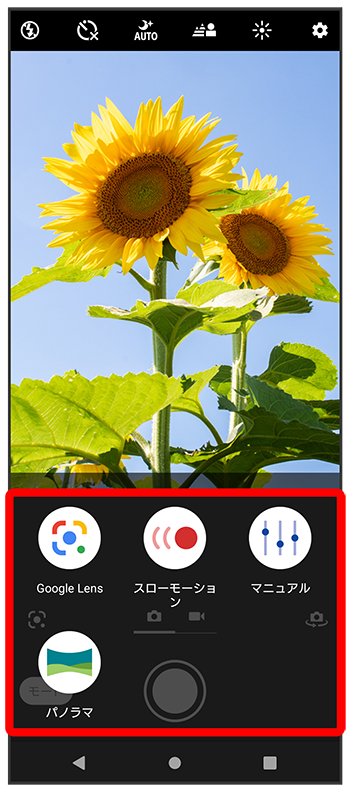 モード一覧画面で- フロントカメラでの撮影時は、/のみ調節できます。