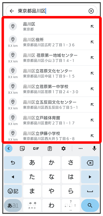 住所や都市、施設名などを入力選択候補から住所や都市、施設名などをタップ