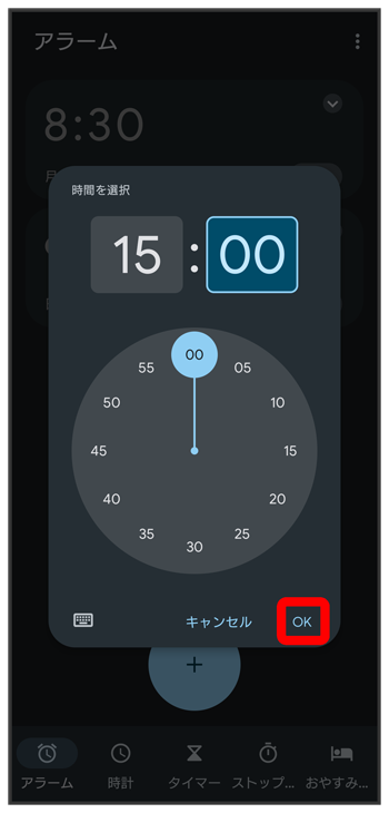 アラーム設定時刻になると、アラーム音や振動でお知らせします。