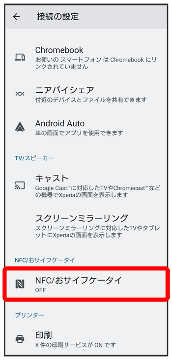 と操作してもNFC/おサイフケータイ®設定画面を表示することができます。
