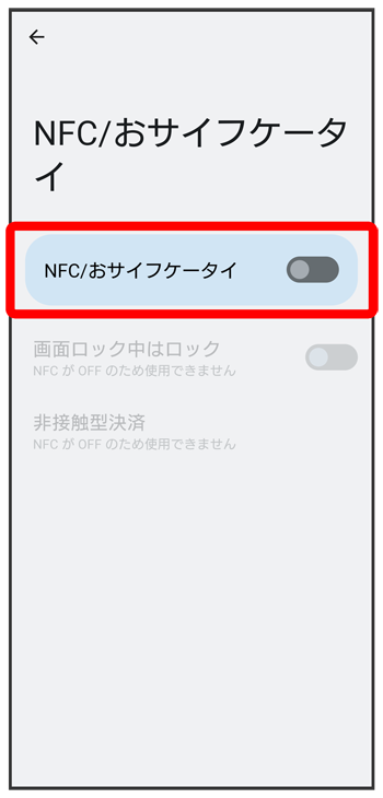 表示)にすると、画面ロック中はNFC/おサイフケータイ®機能がロックされます。画面ロックを解除している間のみ、NFC/おサイフケータイ®機能を利用できます。