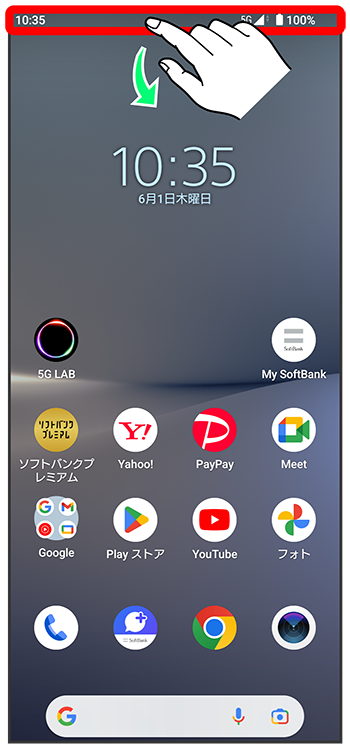 ステータスバーを下にフリック