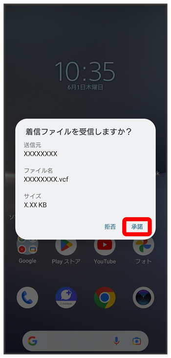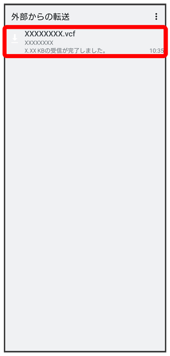 ステータスバーを下にフリック着信ファイルの通知をタップ
