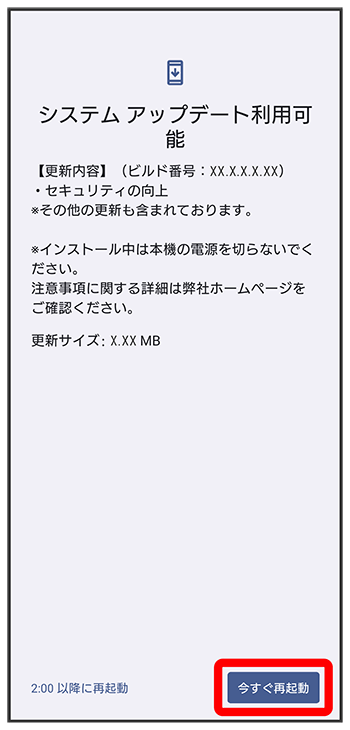 通知パネルに表示されるソフトウェア更新の通知をタップし、画面の指示に従って操作してください。