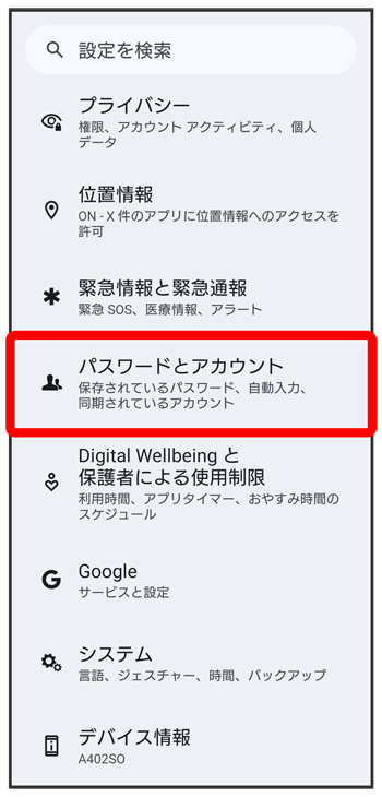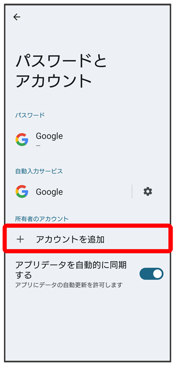 - 画面ロック解除方法を「パターン」/「ロックNo.」/「パスワード」に設定している場合は、画面ロック解除の入力画面が表示される場合があります。画面ロック解除方法を入力してください。