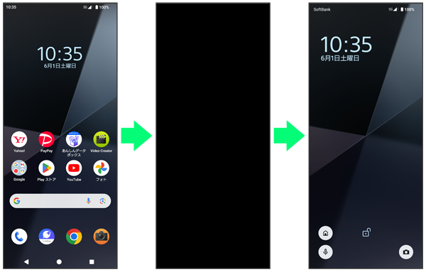 - 画面点灯時に電源キーを押すと、手動で画面ロックすることができます。