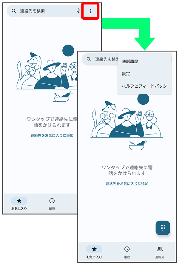 をタップすると、その画面で利用できる機能の設定や項目が画面に表示されます。