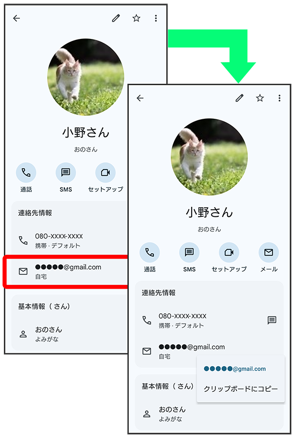画面をロングタッチすると利用できる設定や項目が表示される画面もあります。