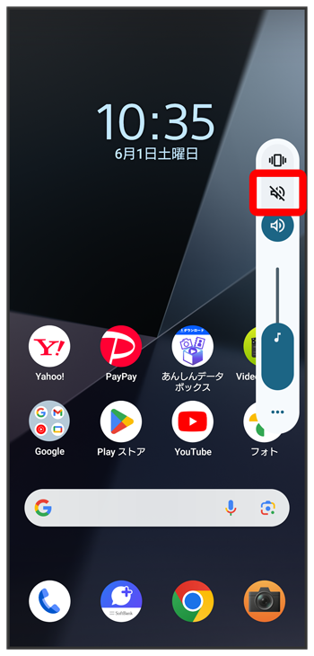 クイック設定パネルからマナーモード(バイブなし)に設定することができます。