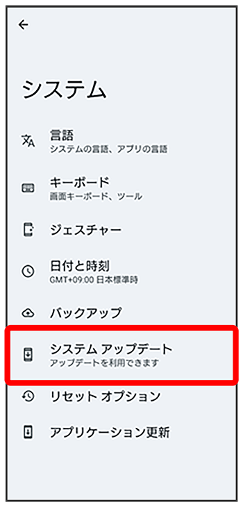 通知パネルに表示されるソフトウェア更新の通知をタップし、画面の指示に従って操作してください。