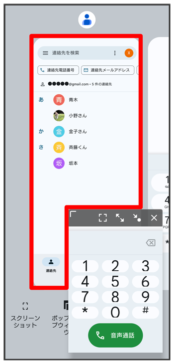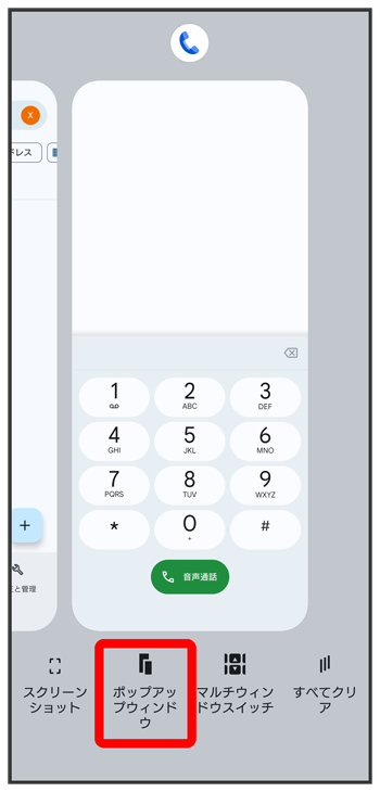 メイン画面の上に、別のアプリを重ねて表示し操作できます。分割画面(マルチウィンドウ)と組み合わせると、最大3つのアプリを同時に表示できます。