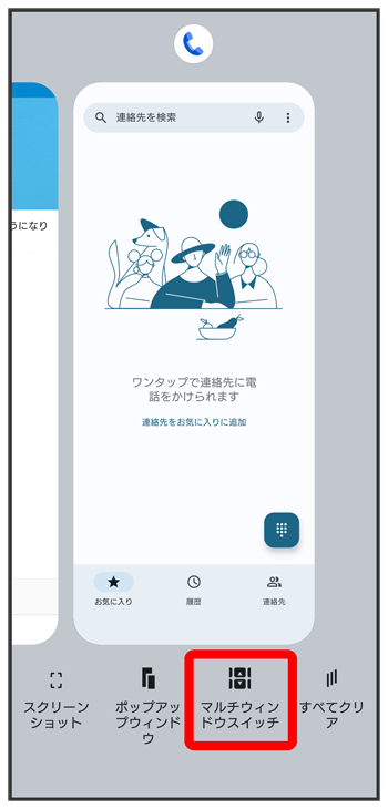 分割表示した2つのアプリを切り替える(マルチウィンドウスイッチ)