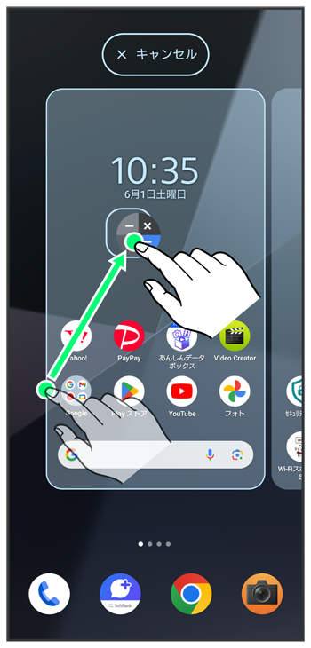 ホーム画面で対象のアイテムをロングタッチ移動したい場所にドラッグウィジェットやアイコンを削除する