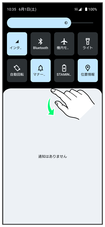 ステータスバーを下にフリック