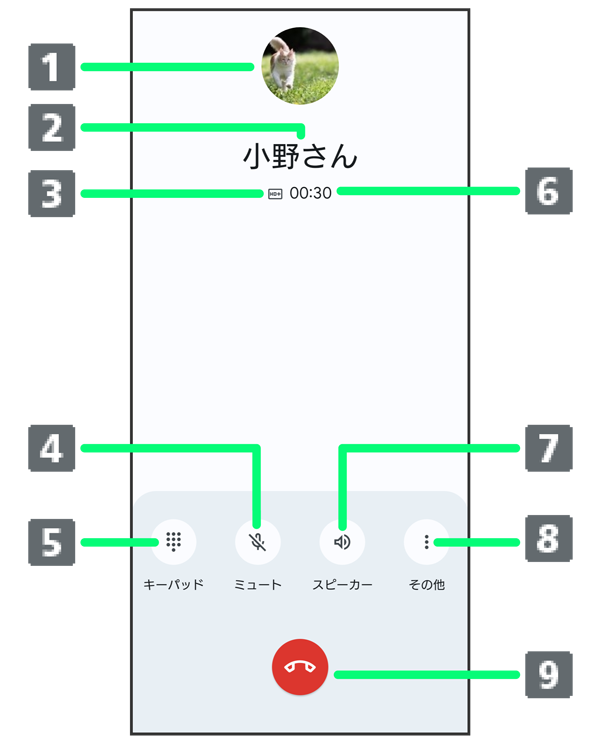 - 連絡先に登録している相手の名前/電話番号が表示されます。