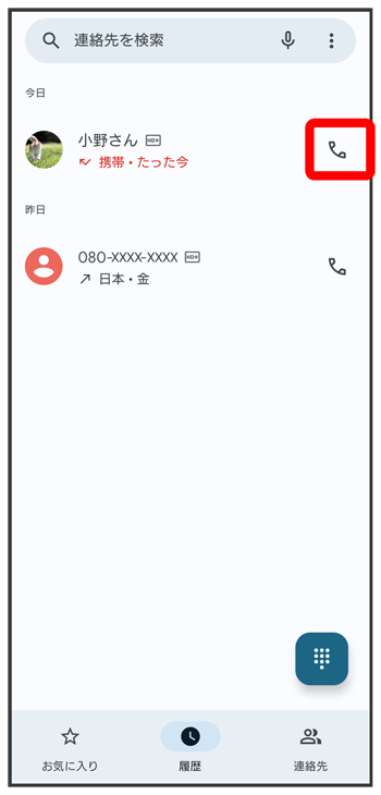 通話履歴から電話をかける