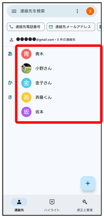 表示)続けてほかの対象の連絡先をタップと操作します。