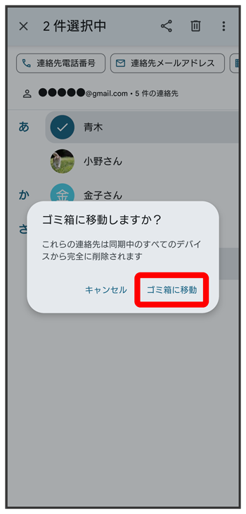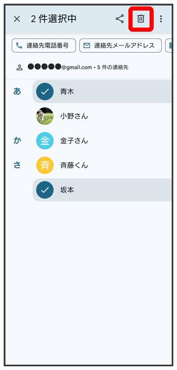 - 複数の連絡先を削除する場合は、対象の連絡先をロングタッチ(