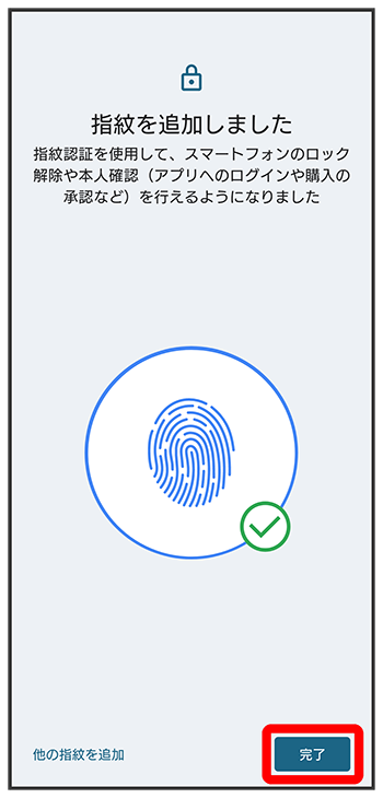 指紋の登録が完了します。