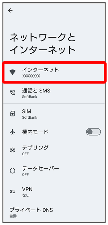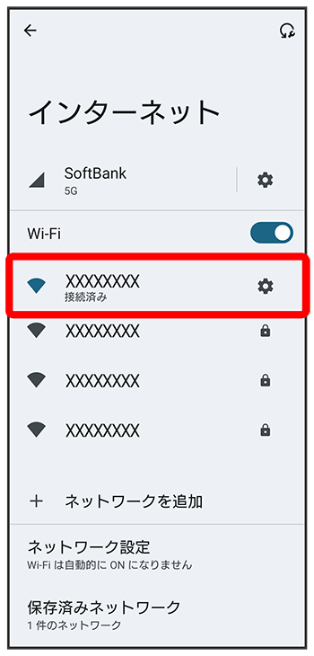 インターネット画面で、接続中のWi-Fi ネットワークをタップ