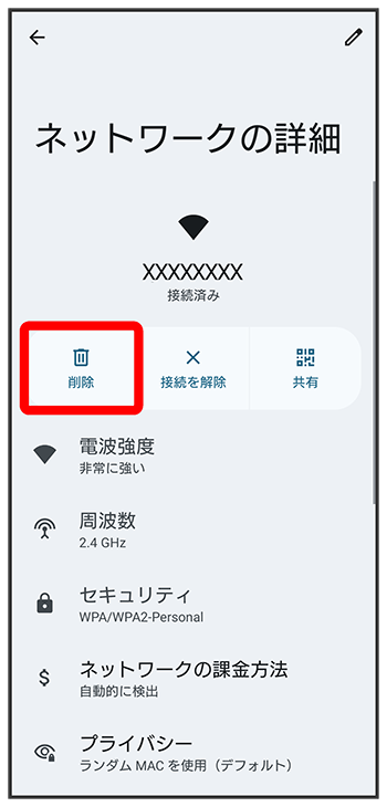 - Wi-Fi ネットワークとの接続を削除すると、再接続のときにパスワードの入力が必要になる場合があります。