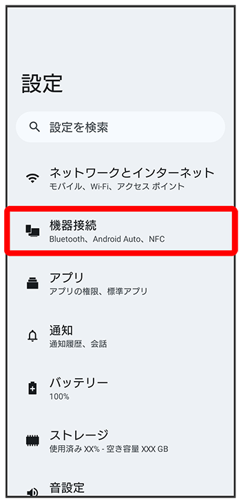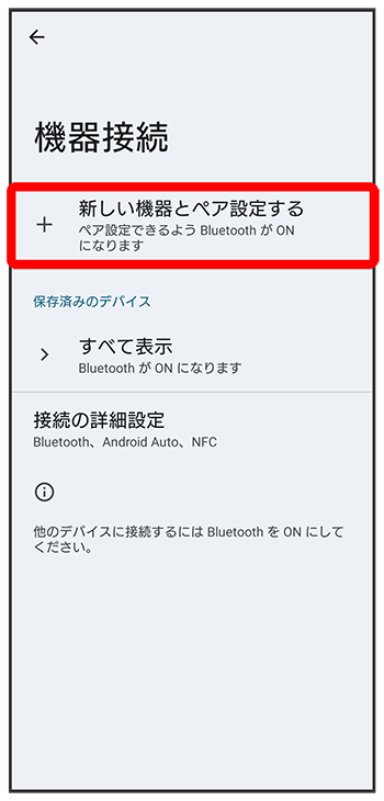 - 機器接続画面の上部に、ペア設定中のBluetooth機器が表示されます。