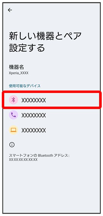 「使用可能なデバイス」欄に、近くにあるBluetooth機器が表示されます。