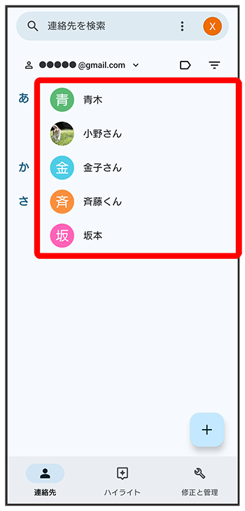 表示)続けてほかの対象の連絡先をタップと操作します。
