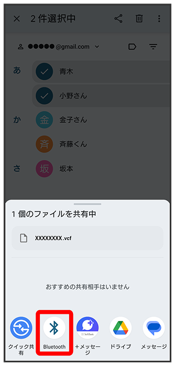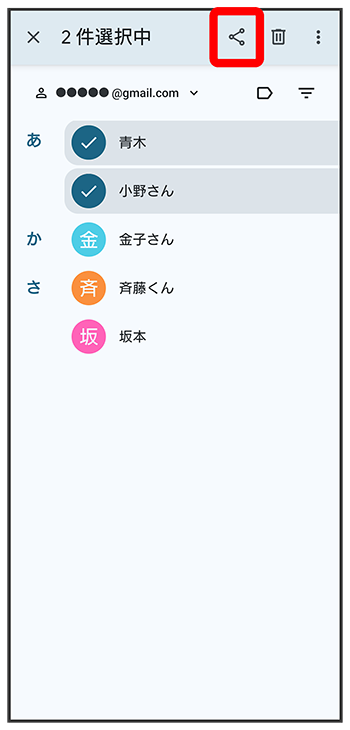 - 複数の連絡先を送信する場合は、対象の連絡先をロングタッチ(