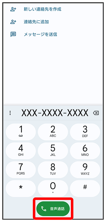 ダイヤルキーをタップして相手の電話番号を入力
