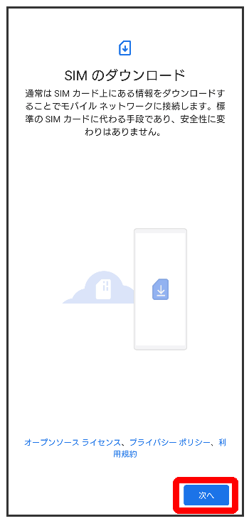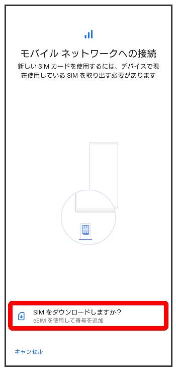 - eSIMを有効にする場合は、をタップします。以降は、画面の指示に従って操作してください。