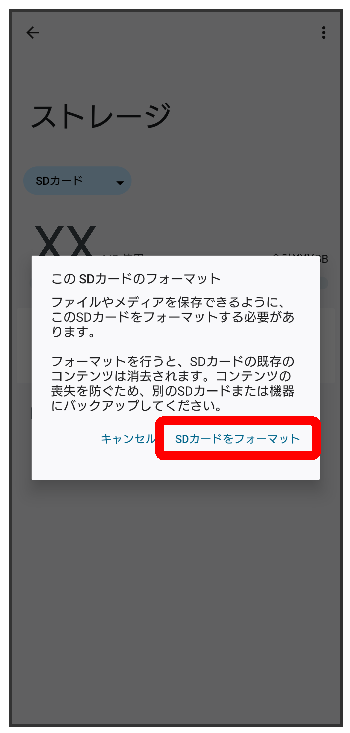 SDカード内のデータがすべて消去されます。