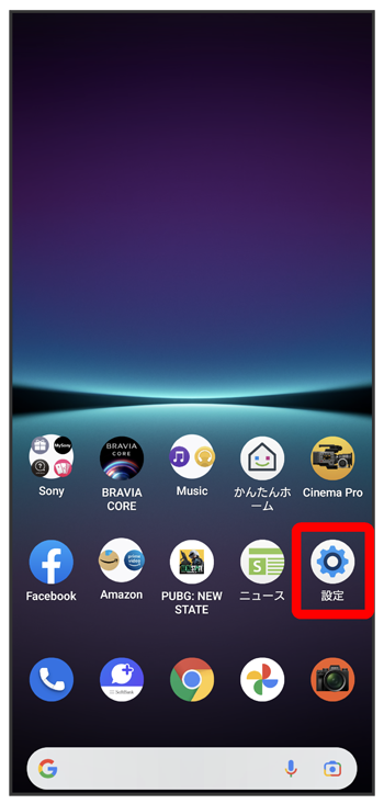 - 画面ロック解除方法を「パターン」/「ロックNo.」/「パスワード」に設定している場合は、画面ロック解除の入力画面が表示される場合があります。画面ロック解除方法を入力してください。