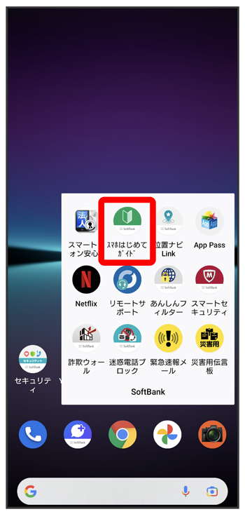 (スマホはじめてガイド)のご利用にあたっての注意に関する確認画面が表示されます。画面の指示に従って操作してください。