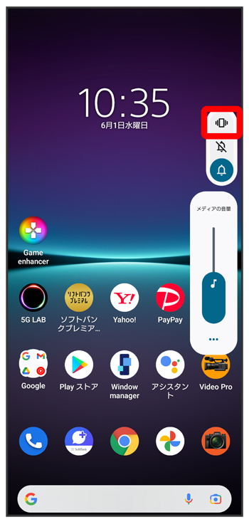 クイック設定パネルからマナーモード(バイブあり)に設定することができます。