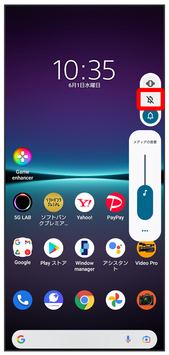 クイック設定パネルからマナーモード(バイブなし)に設定することができます。