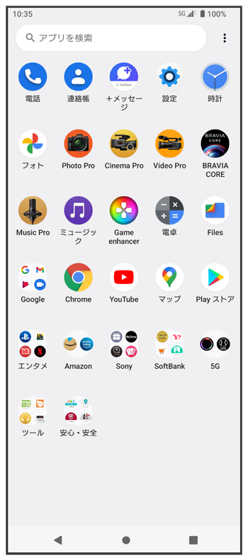 「ランチャー画面」は、ホーム画面で画面を上にフリックすると表示できます。