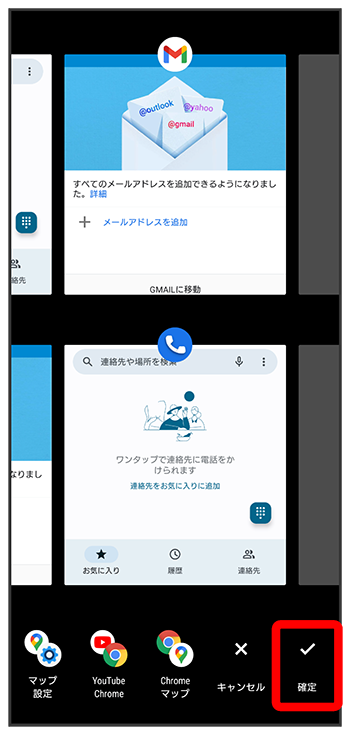 - をタップして、ランチャー画面で利用したいアプリを選択することもできます。