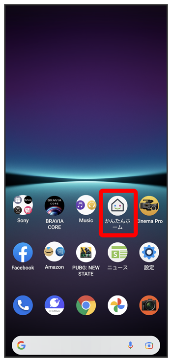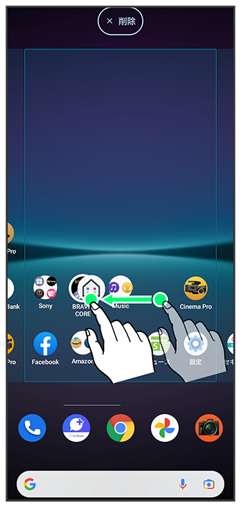 ホーム画面/ランチャー画面でフォルダに入れたいアイコンをロングタッチ