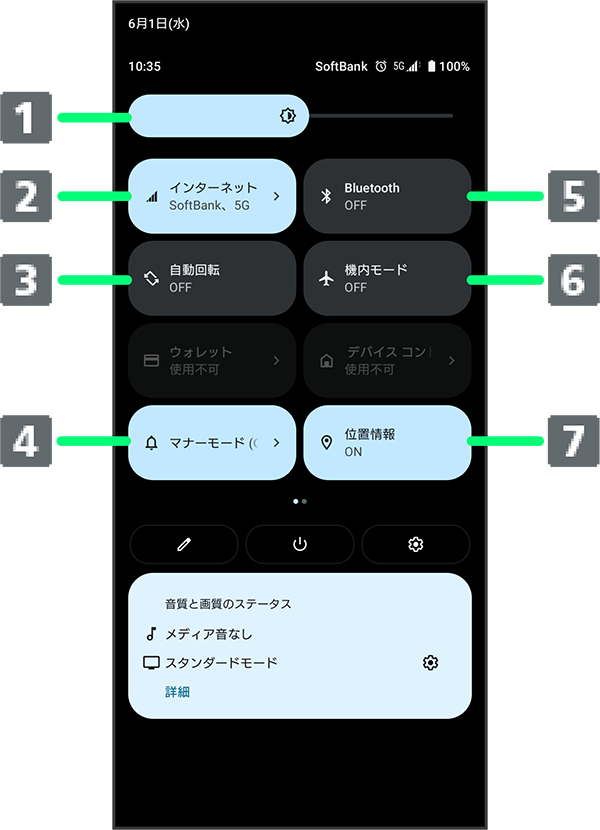 - クイック設定ツールによっては設定画面を開けない場合があります。