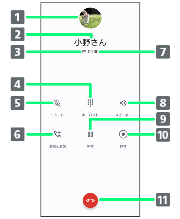 - 通話時間が表示されます。