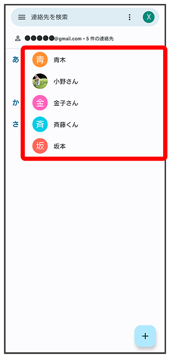 表示)続けてほかの対象の連絡先をタップと操作します。
