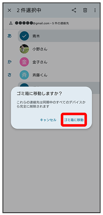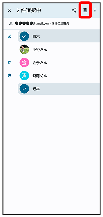 - 複数の連絡先を削除する場合は、対象の連絡先をロングタッチ(